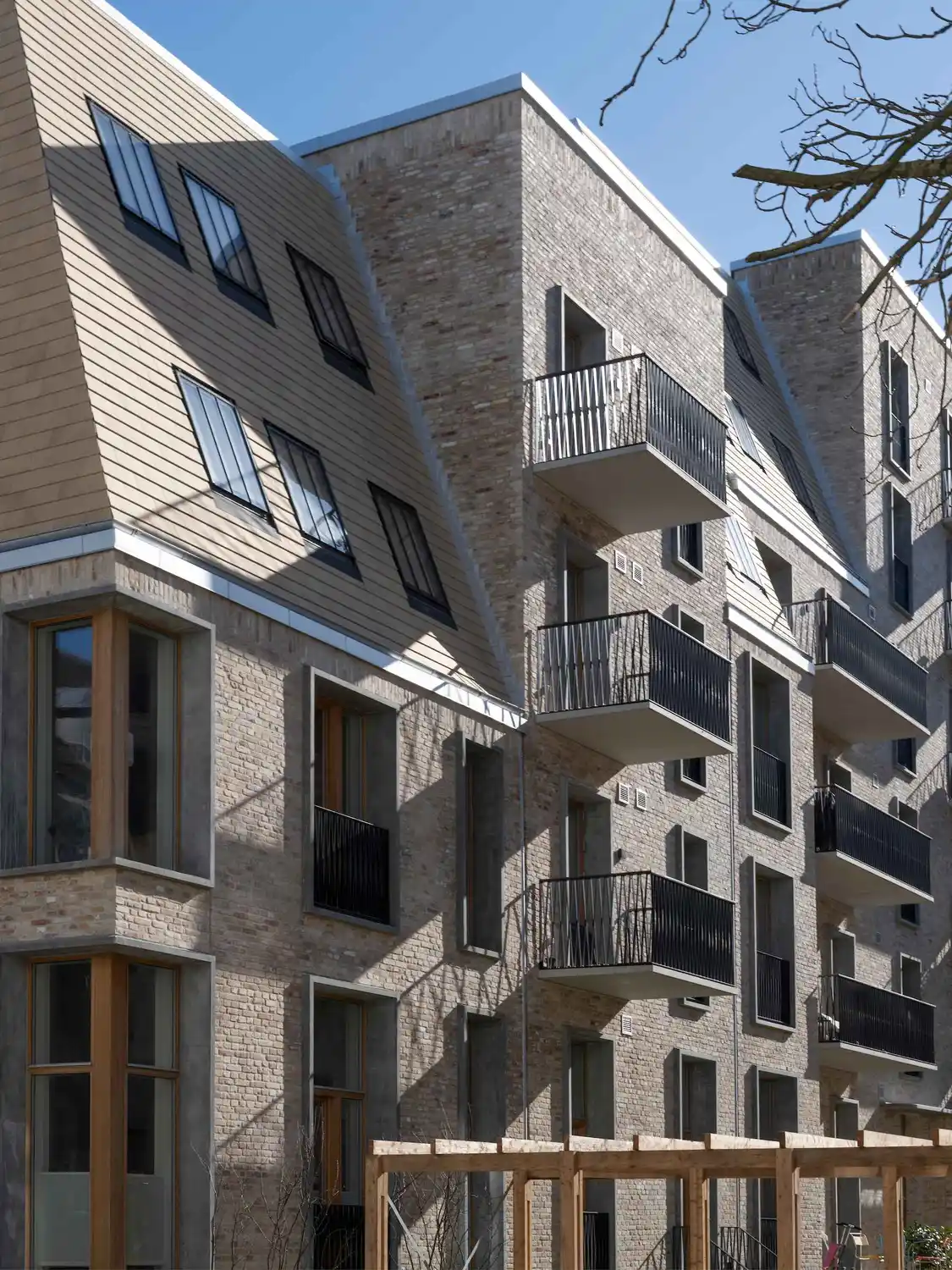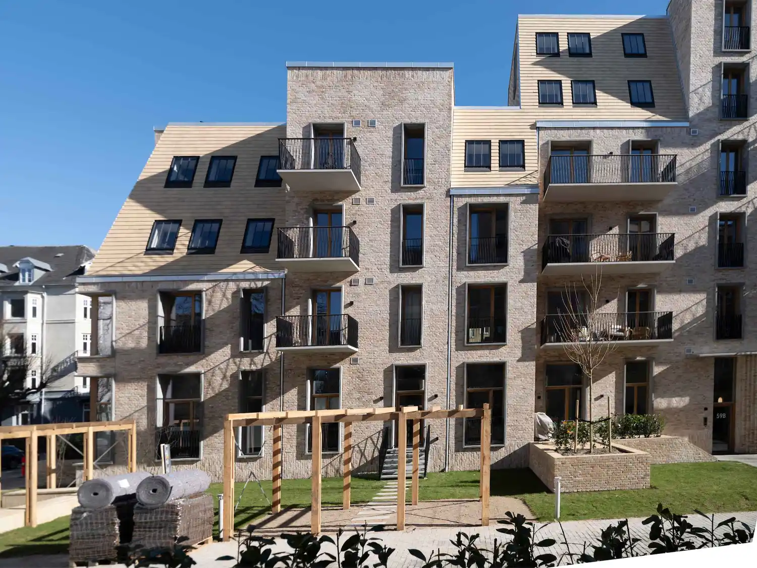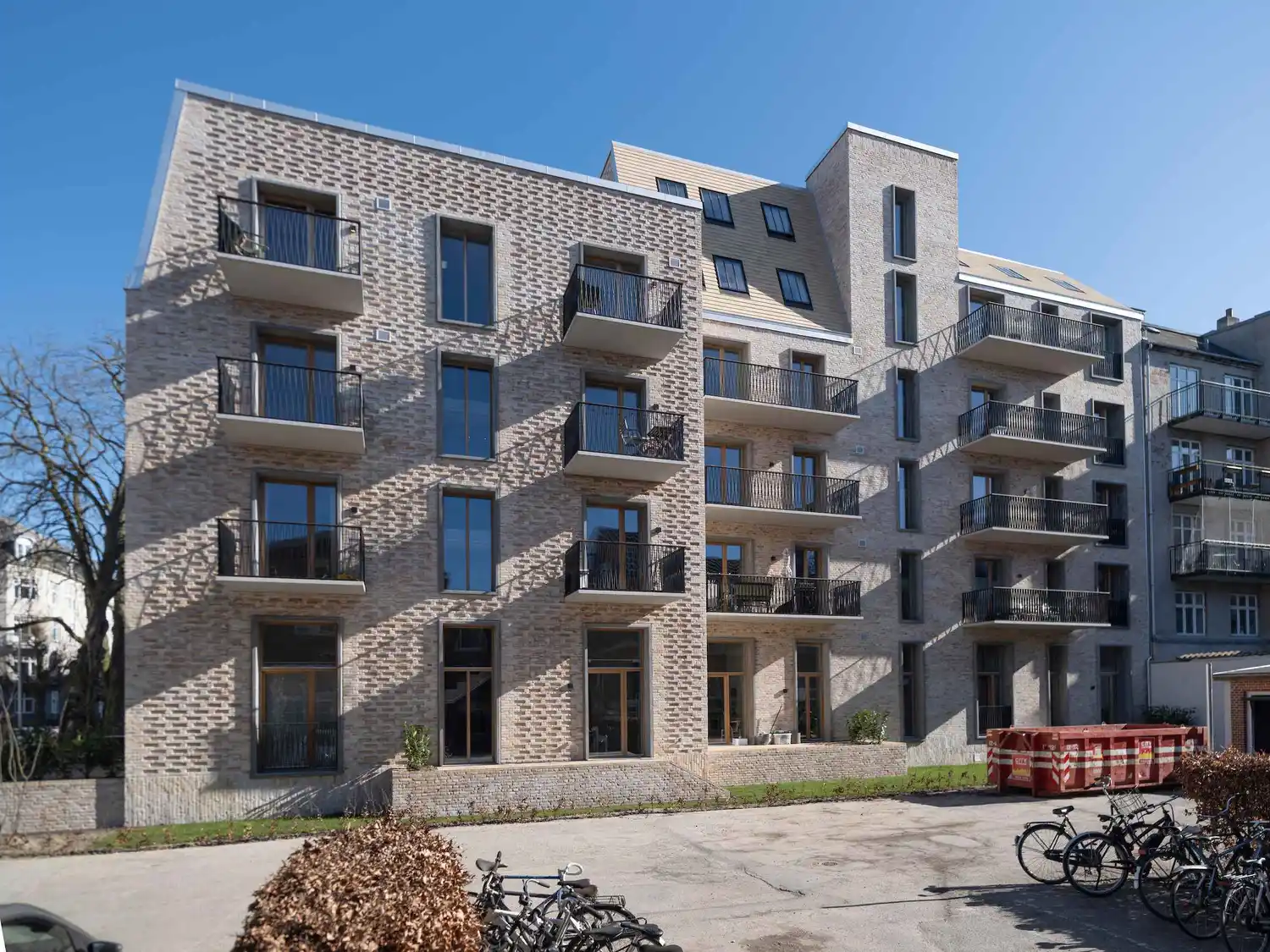 Projektet rummer boliger på 55–140 m² og et samlet etageareal på 3.615 m². Ambitionen var klar: at skabe moderne boliger med private uderum uden at gå på kompromis med områdets særlige udtryk og de strenge regulativer, der gælder på Frederiksberg.